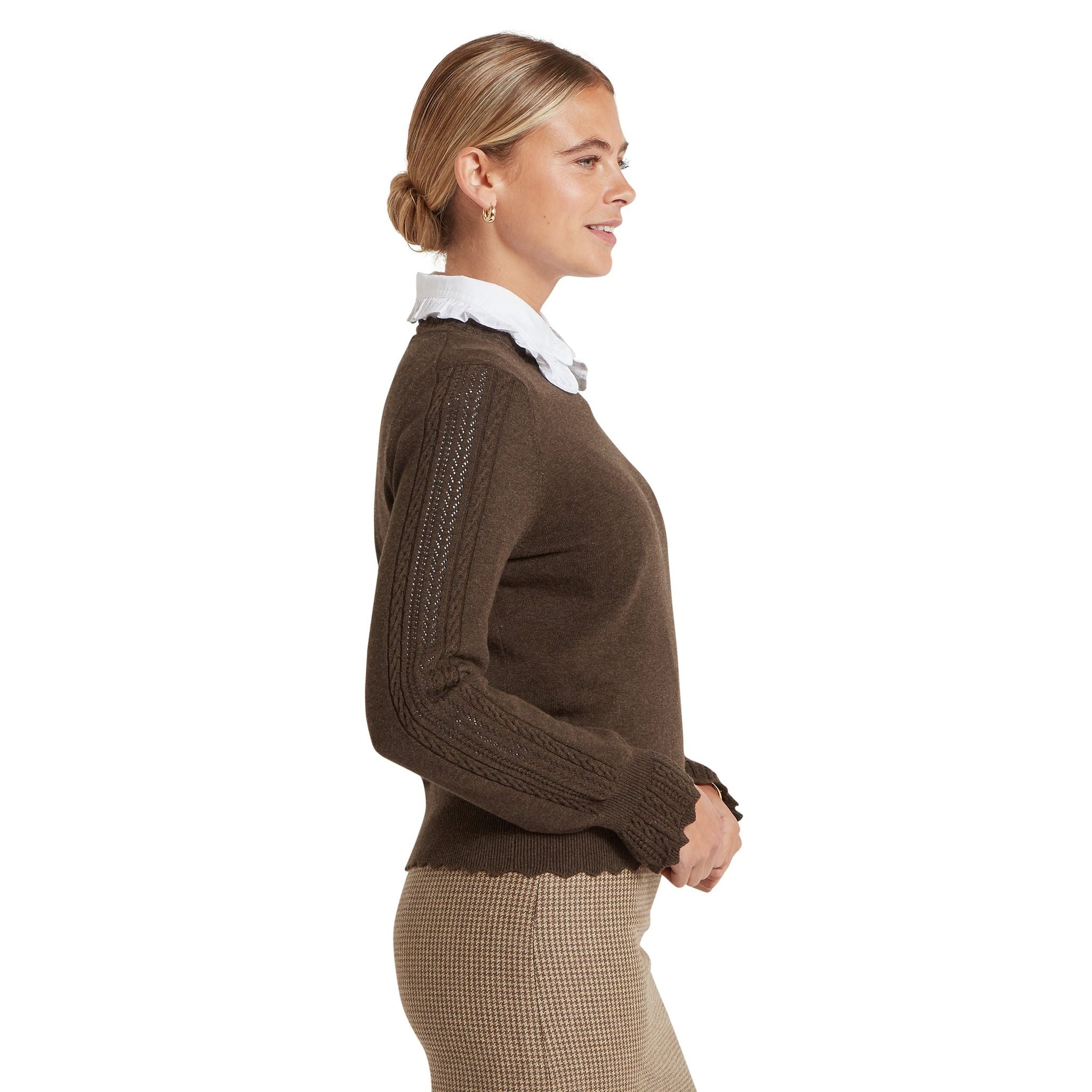 Delicate and elegant in its appearance, this slim-fitting top is elevated by a scalloped collar, cuffs and oversized hem that offer a subtle hint of distinction. Made using a unique pointelle knit renowned for its light weight and breathability, this jumper feels as good as it looks.