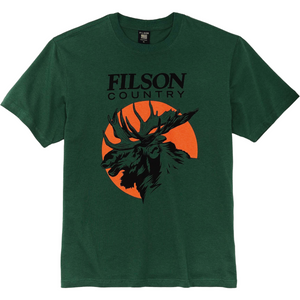 Filson's Pioneer Graphic T-Shirt is a heavy-duty, reliable staple in any wardrobe, and you simply will not find a better tee. It’s made of 100% cotton–a 6.5-oz. knit jersey with texture, structure and a dry-hand feel. The sturdy rib-knit collar has plenty of stretch, holds its shape and lasts for years. Custom graphics are designed in-house at Filson and are dyed with a special process for lasting color vibrancy. A basic essential with graphics to rep the original Alaskan Outfitter.