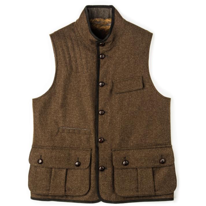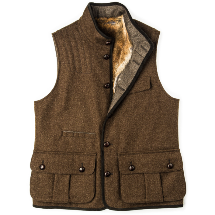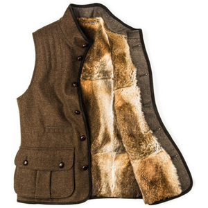 Väldesignad och praktisk lodenväst med pälsfoder från Österrikiska Habsburg. Västen är fodrad med lyxig kaninpäls, avslutad med fina detaljer i mocka och manchester, västen har även en klassisk game pocket på baksidan, har denna traditionella väst en unik modern twist.