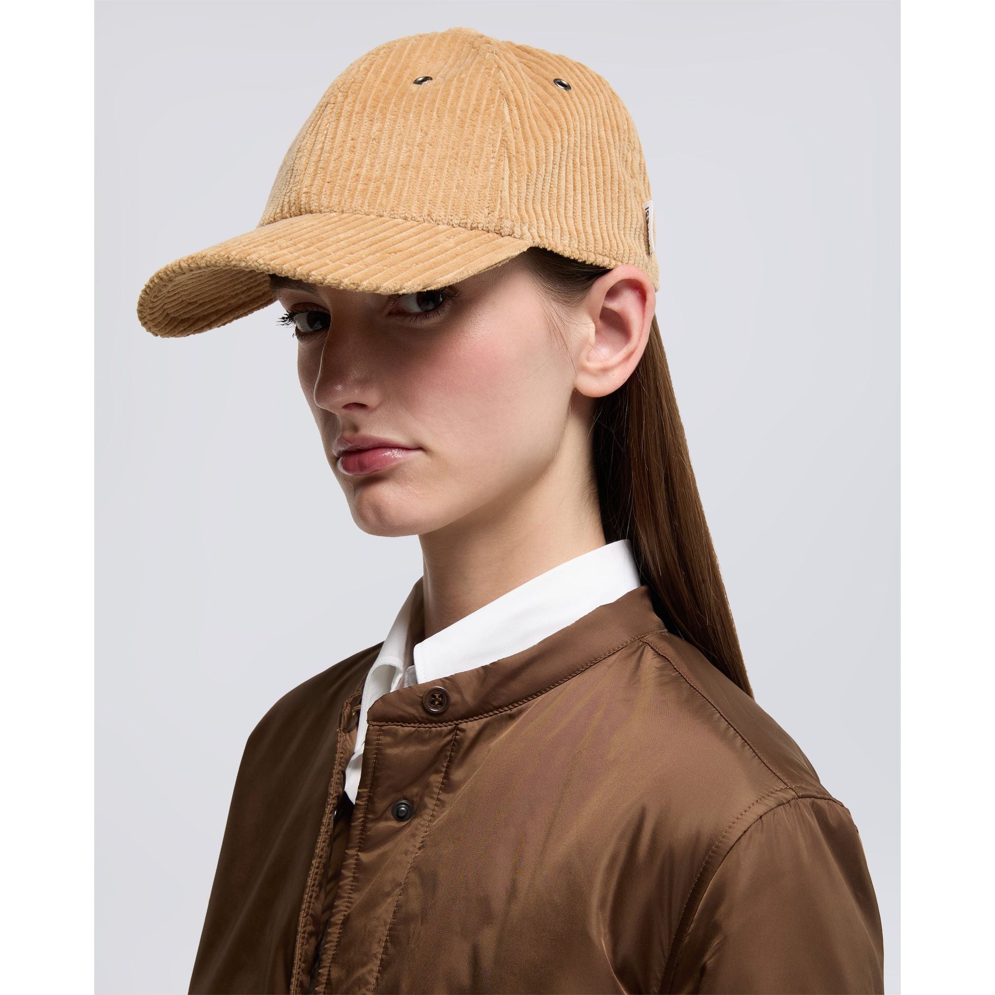 Hat crafted from pure cotton corduroy, featuring a visor and an adjustable rear strap. Finished with the emblematic Aspesi flag label.