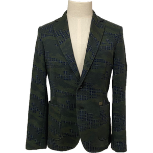 Mjuk, stickad kavaj i bomull, i blå/grön camouflage.