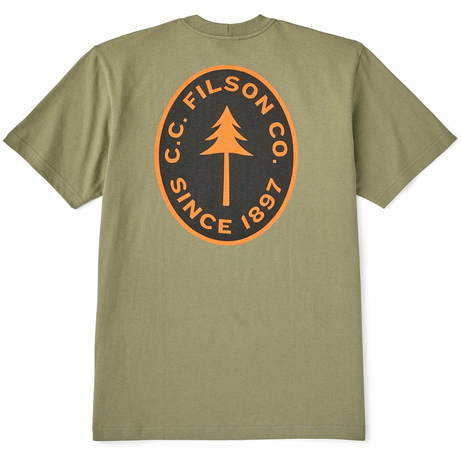 A heavy-duty t-shirt made in the USA, the Filson Outfitter Short Sleeve Graphic T-Shirt is ready for everyday use—constructed from sturdy 6.5-oz 100% cotton jersey. Built with a rib-knit collar that effectively retains its shape.